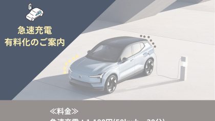 いつもボルボ・ギャラリー松山のブログをご覧いただきありがとうございます。 ボルボセレクト松山/サービスにて無料でご利用いただいておりました急速充電ですが、本日、10月1日より有料化させていただく運びとなりました。ご利用いただいて...