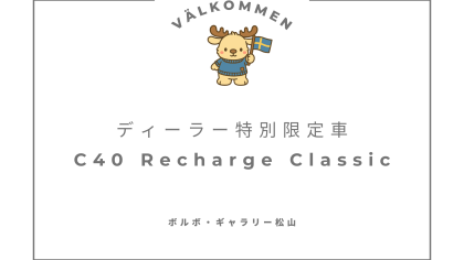 いつもボルボ・ギャラリー松山のブログをご覧いただきありがとうございます。 【ディーラー特別限定車 C40 Recharge Classic 登場】 ボルボ・ギャラリー松山10:00~19:00℡ 089-989-9181