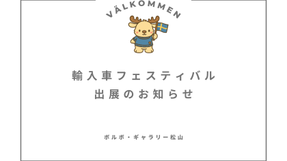 いつもボルボ・ギャラリー松山のブログをご覧いただきありがとうございます。 【輸入車フェスティバル出展のお知らせ】日時:10月18日(土)・19日(日) // 10:00~18:00場所:エミフルMASAKI オレンジコート2入口(屋外)3台展示予定ぜひ、ご来場くださ...