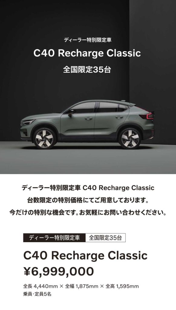 【ディーラー特別限定車 C40 Recharge Classic 登場】